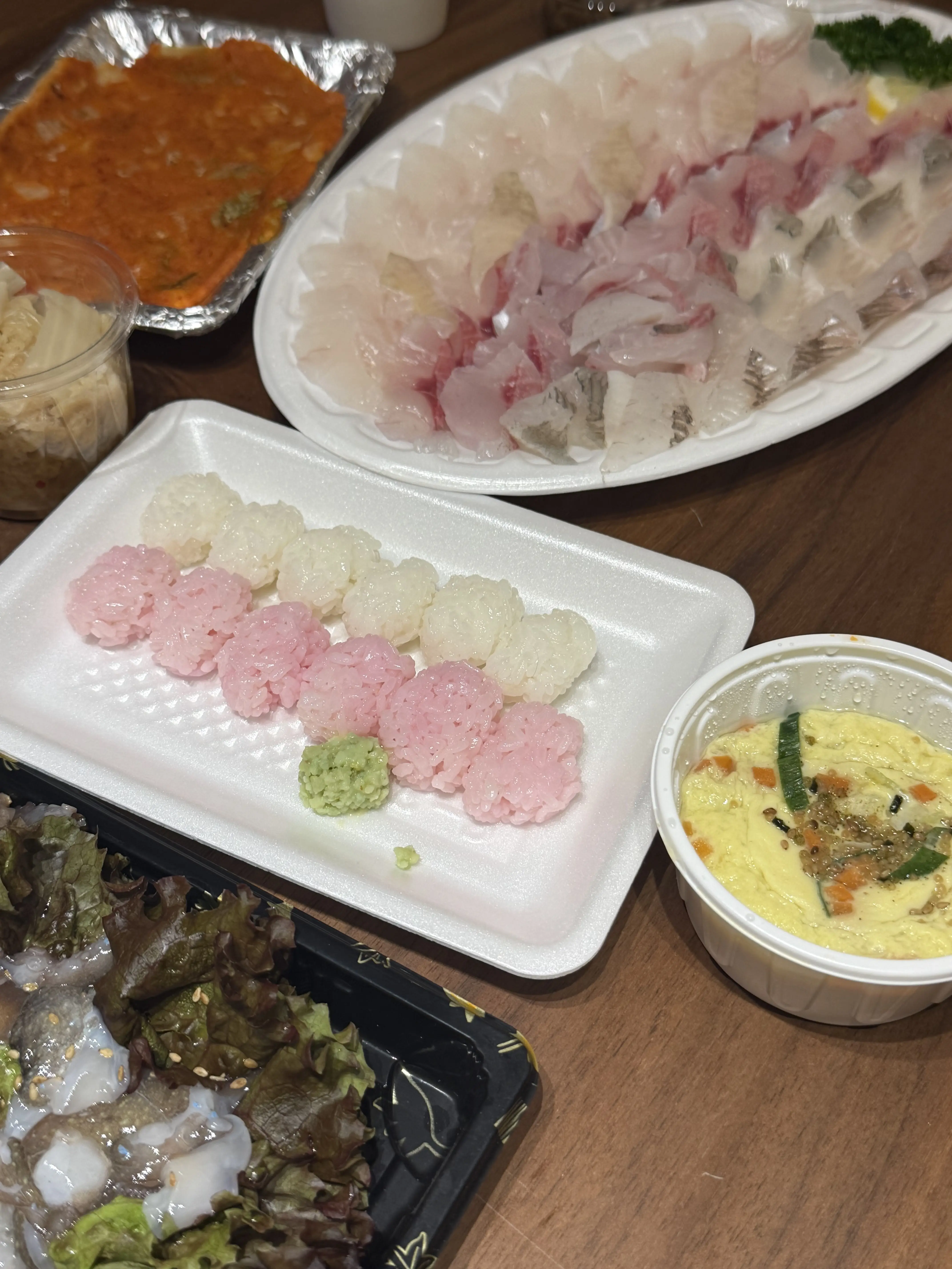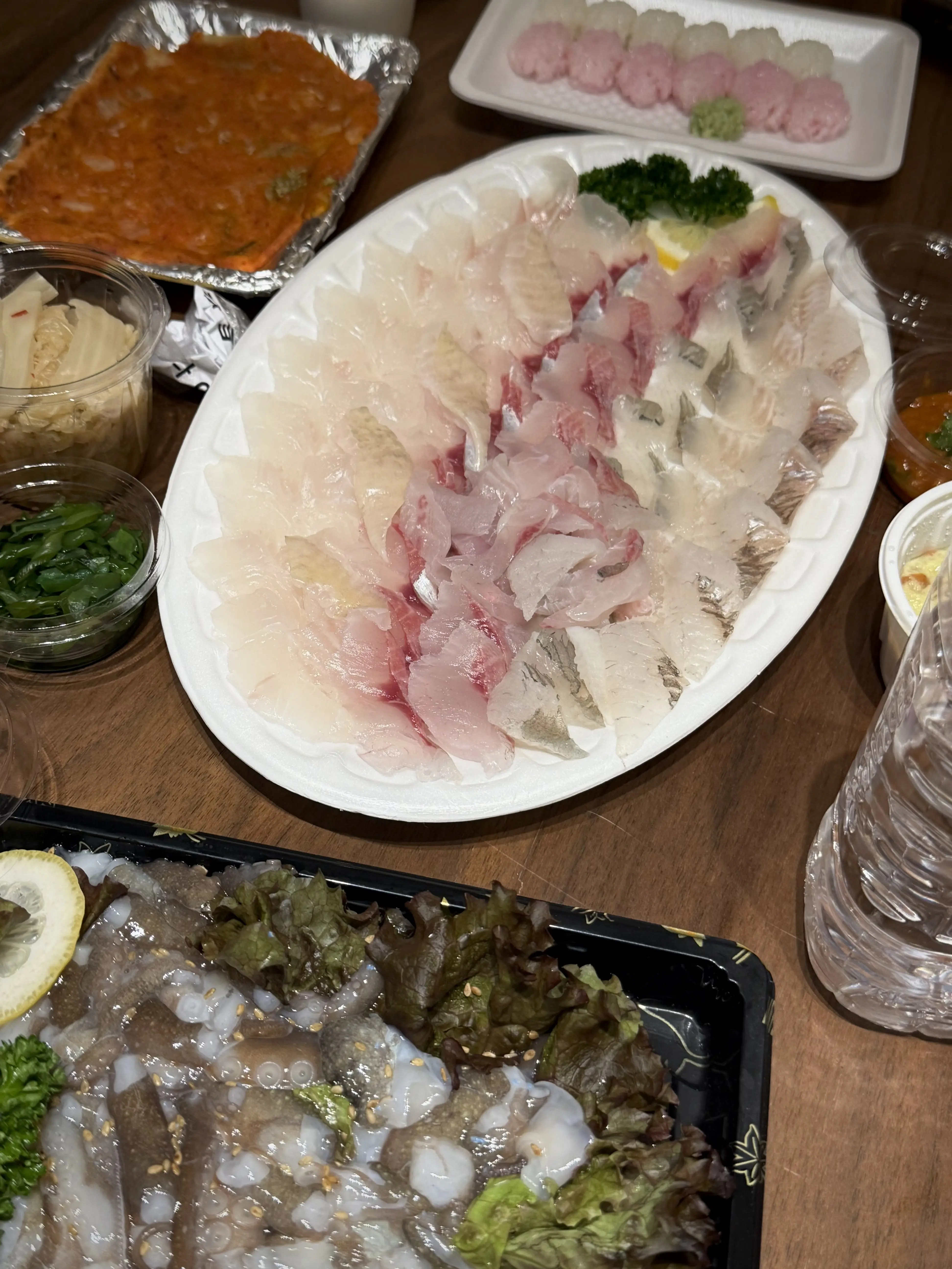 광어와 아이들(취해서 뭔지 기억 안 남). 맛있다.