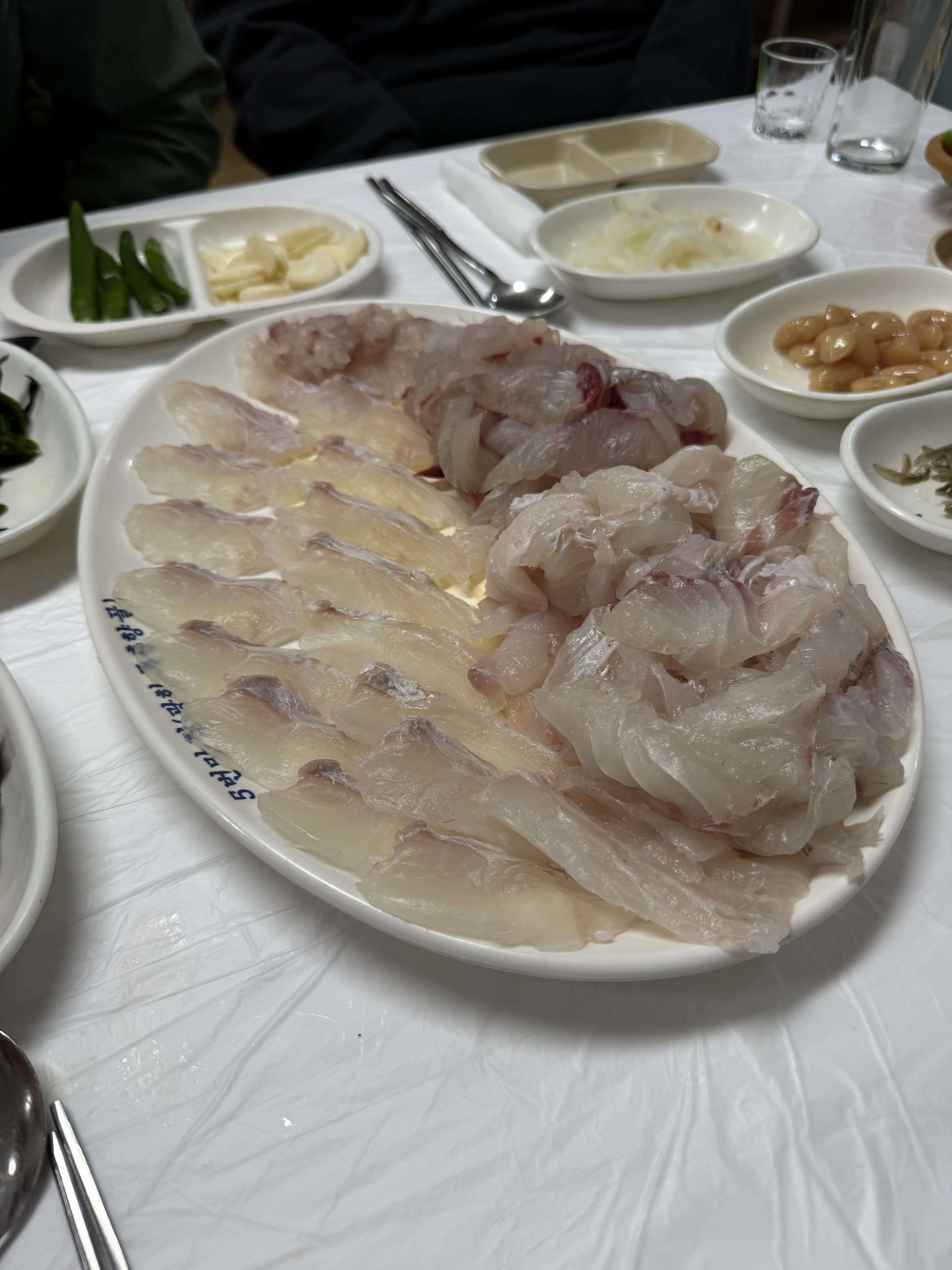 광어, 우럭, 숭어, 산낙지, 매운탕과 기타 등등. 맛있다.